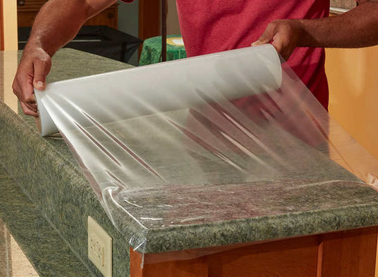 4 Mil Transparan Biru Meja Perekat Penutup Film Pelindung Batu Permukaan Keras